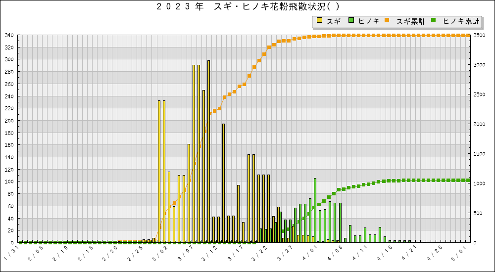 以下のリンクより、詳細な岐阜県下各地区のスギ・ヒノキの花粉飛散状況を見ることができます。
