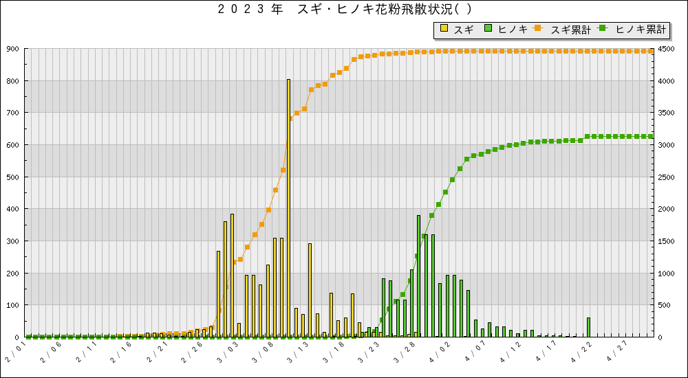 岐阜県下各地区スギ・ヒノキ花粉飛散状況